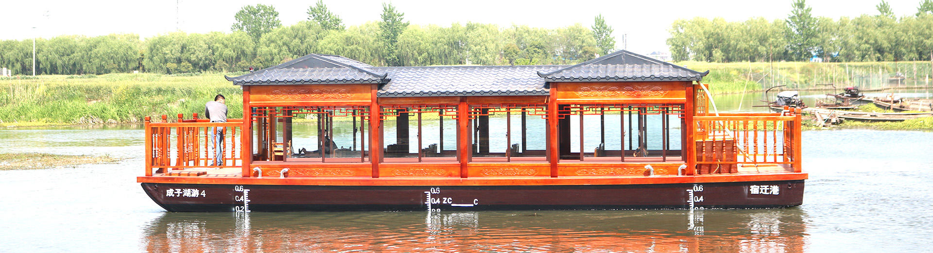 据厂方人员说,大的那条船,在他们心目中就是画舫船,只不过加了点有乌篷船的元素,小的两只船是“改进版”的乌篷船。
